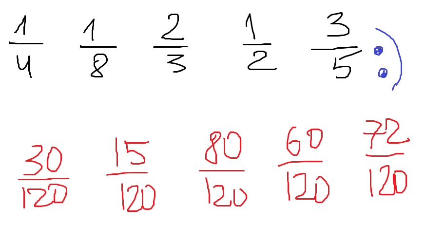 привиди дроби к общему знаменателю 1/4 :1/8 2/3 1/2: 3/5