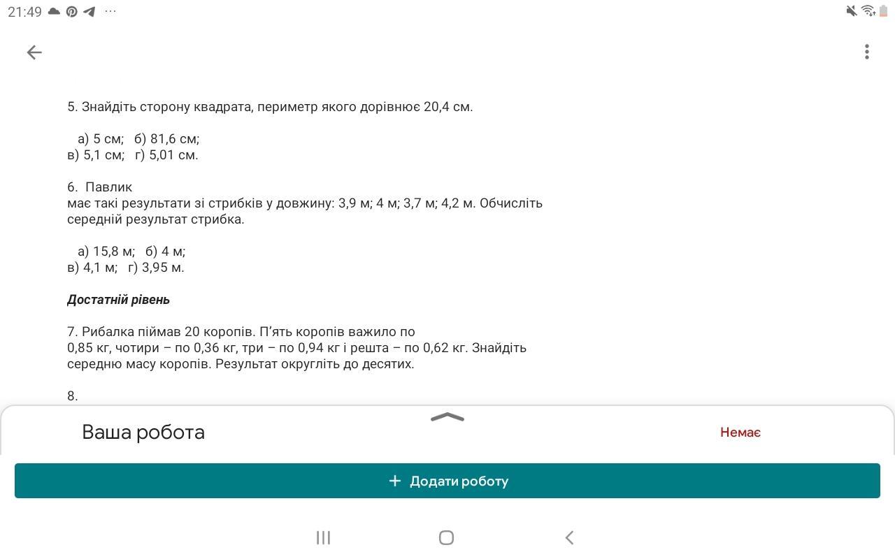6) г (3,9+3,7+4+4,2):4=15,8:4=3,95
