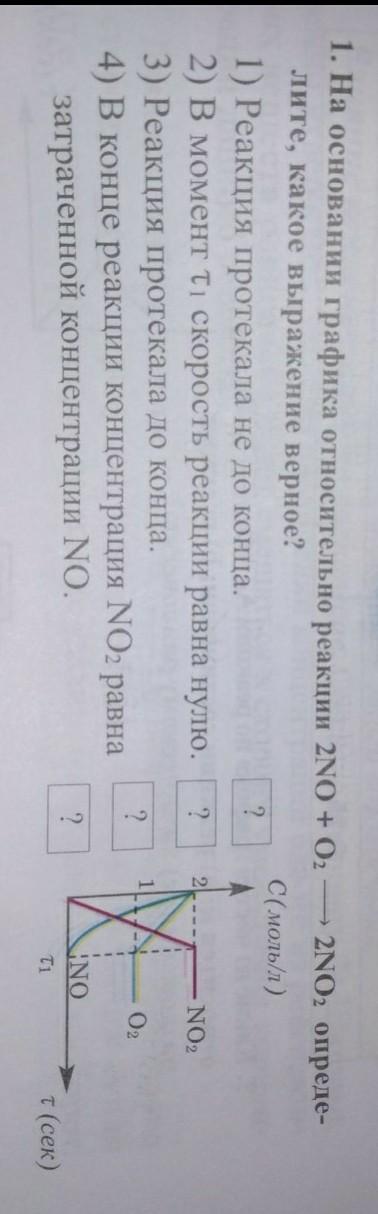Верные утверждения 2 (если концентрация вещества равна нулю, то и скорость реакции равна нулю), 3 (раз исходное вещество истратилось всё, то реакция прошла полностью, а кислород был в избытке), 4 (это даже на графике обозначено пунктирной линией)