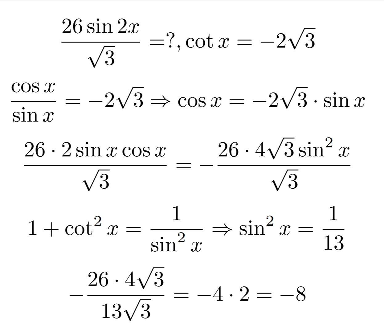 Вычислите значение тригонометрического выражения 26*sin2x/