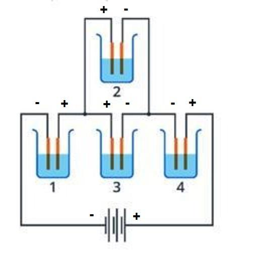 Ванны 2 и 3 соединены параллельно, поэтому ток через эти ванны в 2 раза меньше общего тока.