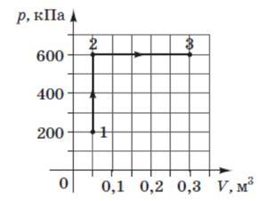 Определите работу, которую выполняет идеальный газ во время процессов 1-2-3 , которые отображены на графике.