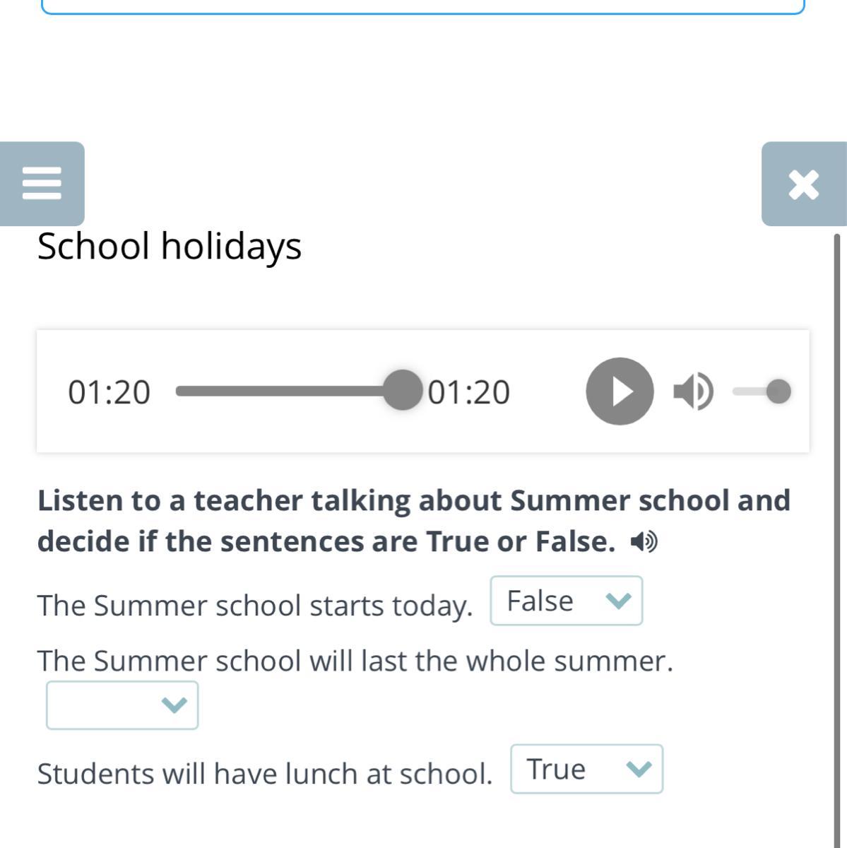 Listen to a teacher talking about Summer school and decide if the sentences are True or False.