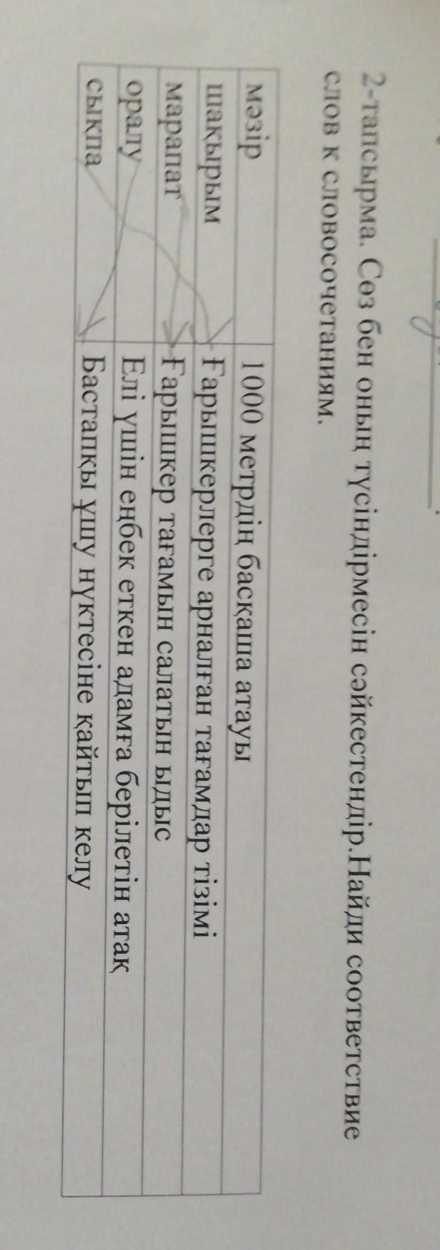 2-тапсырма. Сөз бен оның түсіндірмесін сәйкестендір.Найди соответствие