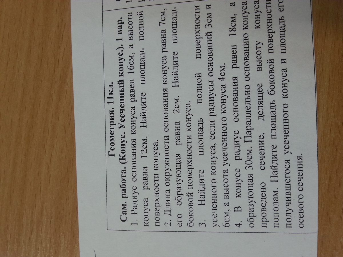 1. Дан конус. r=АО=16 см. h=BO=12 см.