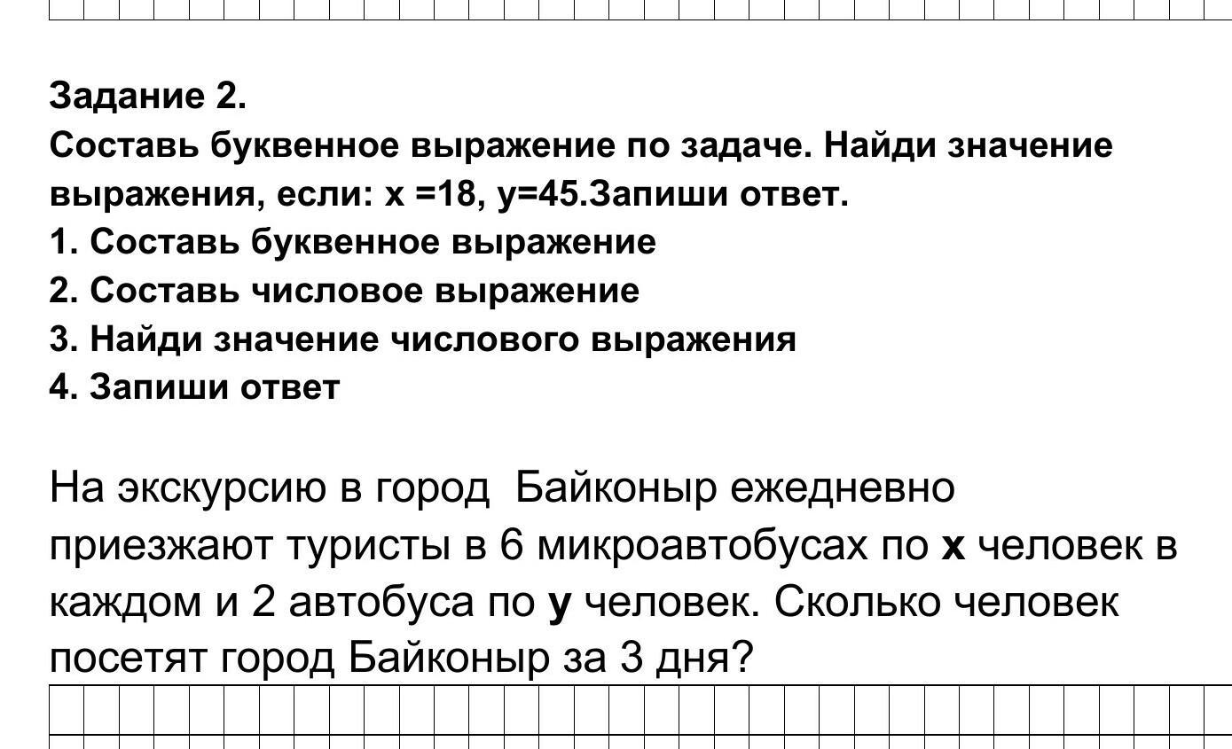 Пошаговое объяснение:На экскурсию в город Байконыр ежедневно приезжают туристы в 6 микроавтобусах по 18 человек в каждом и 2 автобуса по 45 человек 594 человек посеетят горо Байконыр за 3 дня.