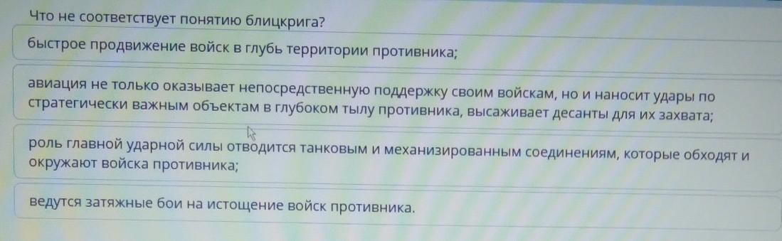 Ведутся затяжные бои на истощение войск противника НЕ соответствует блицкрига