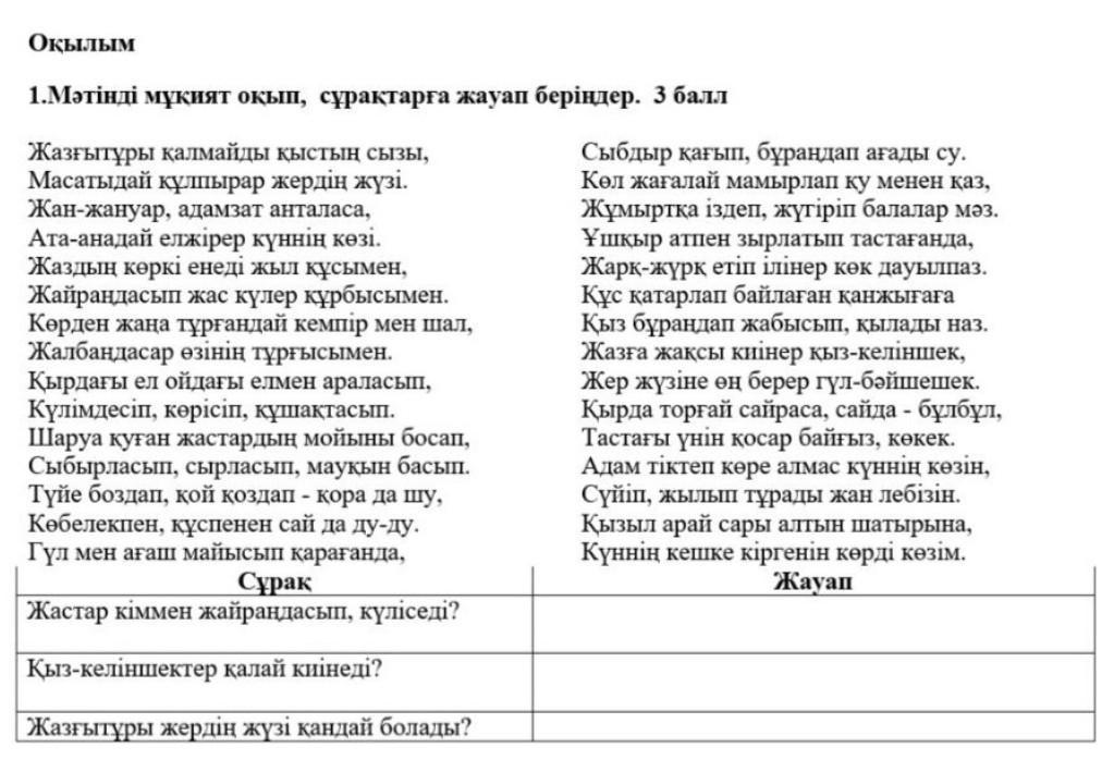 Жаздыгүні қыстың сазы кетіп,жер жүзі құлпырады.