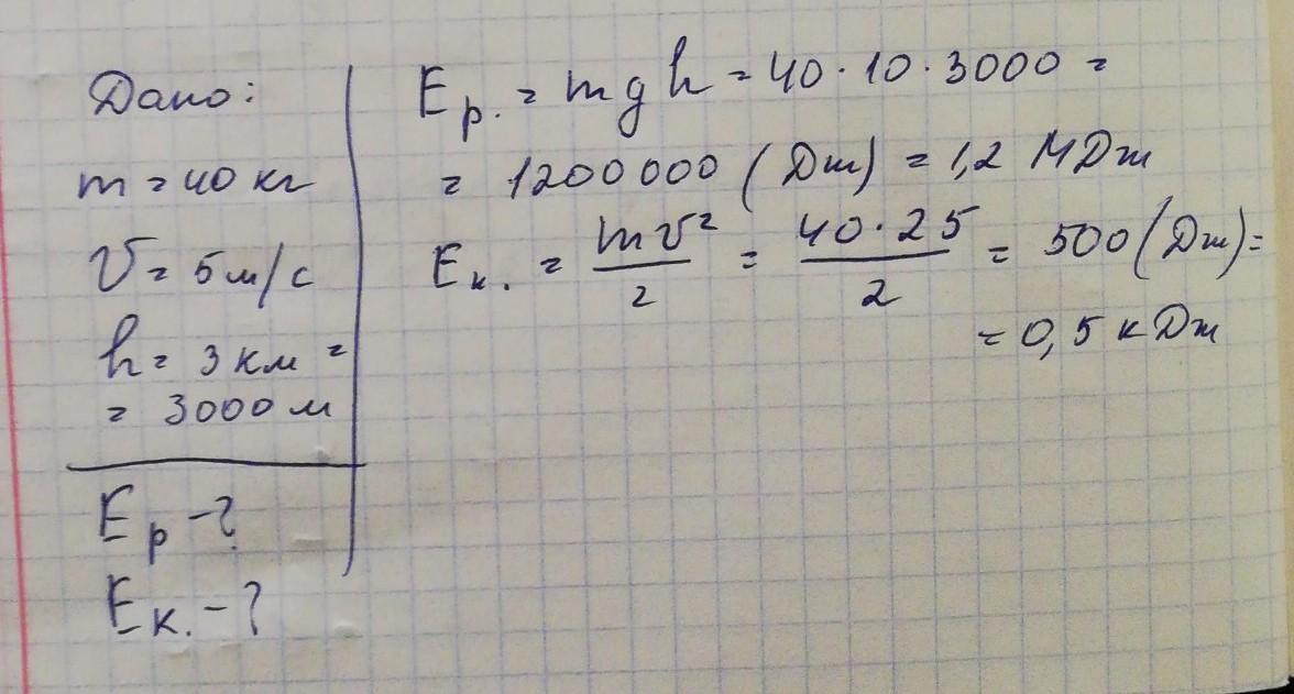 а) тело массой 40 мг движется со скоростью 5 м/с на высоте 3 км. Вычислите потенциальную энергию, которой обладает тело?