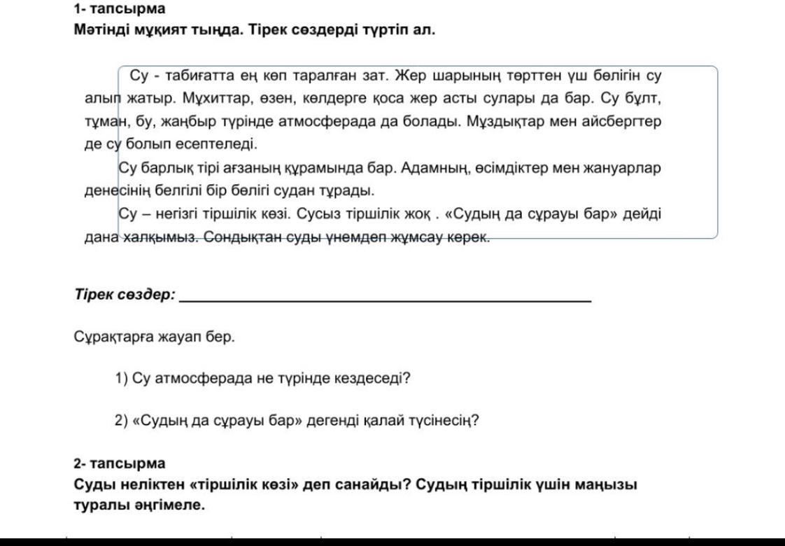 Ответ: тірек сөздер: су, тіршілік көзі...
