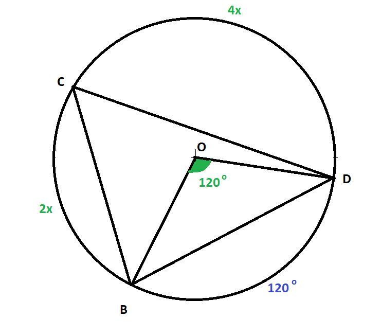 Тогда дуга ВС равна 2х, дуга СD равна 4х.