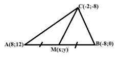 3.Треугольник имеет вершины А(8;12), В(-8;0), С(-2;-8). Найдите длину медианы СМ.