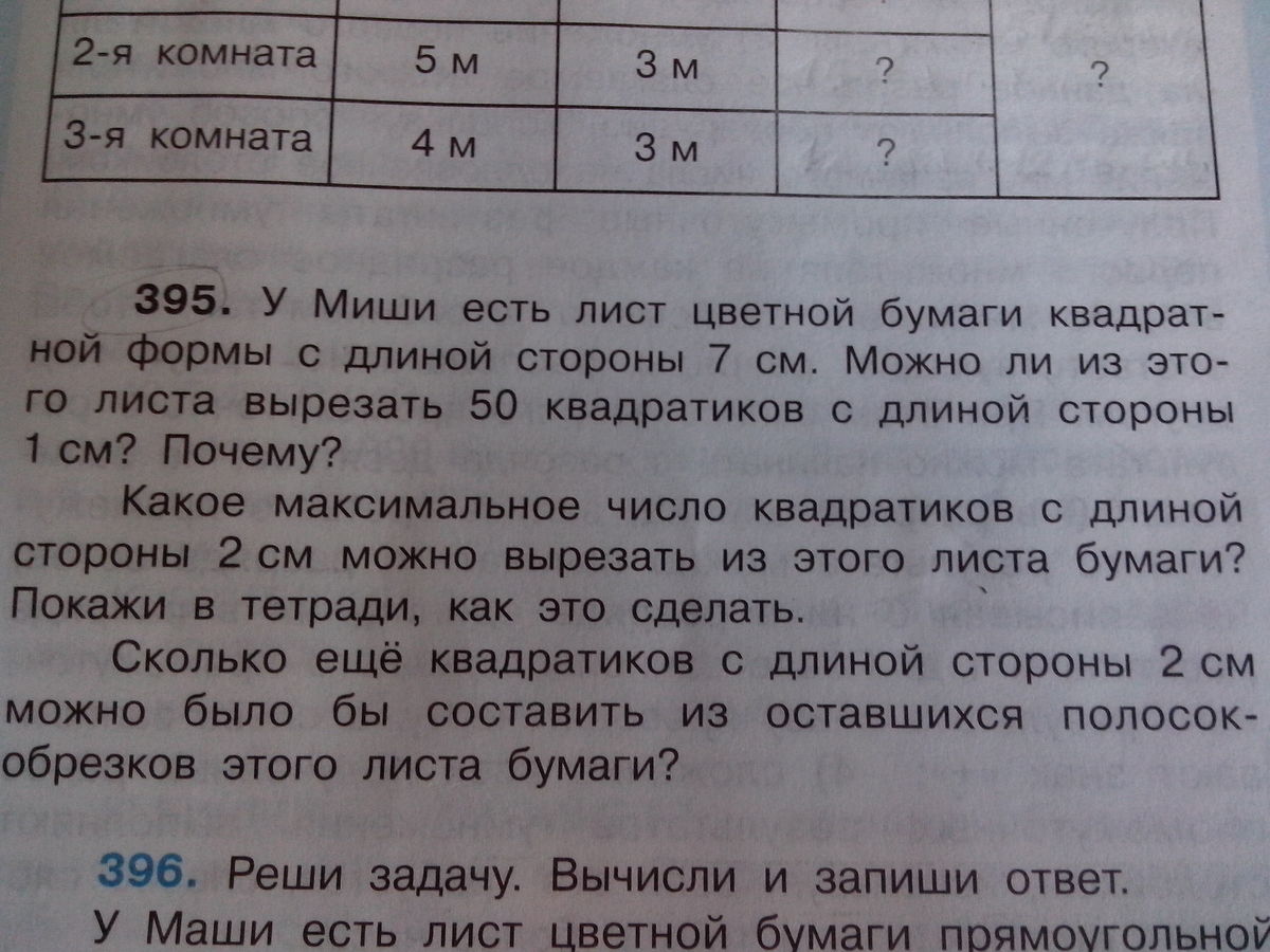 у миши есть лист цветной бумаги квадратной формы с длиной стороны 7 см.можно ли из этого листа вырезать 50 квадратиков с длиной стороны 1 см?почему?