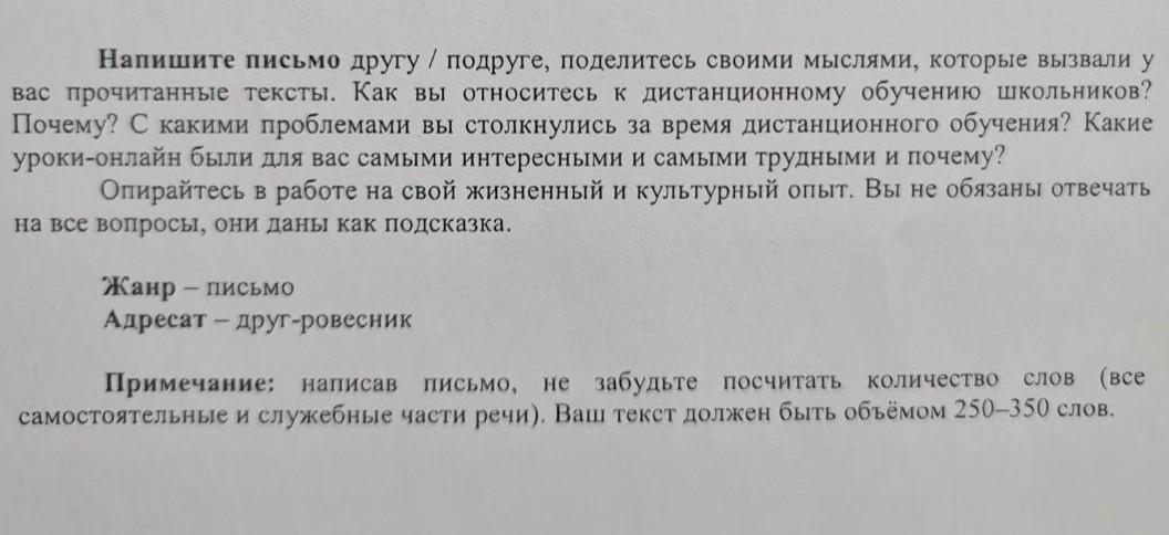 Мне лично оно нравится,но я столкнулся с определенными трудностями.Например с интернетом,он часто отключается и это мешает выполнять работу.Так же мешает то,что бывает на устройствах просто не хватает памяти, приходится удалять нужные приложения и файлы.Ну, думаю что дистанционное обучение очень интересное,ведь оно предполагает самостоятельное освоение учебных материалов.Еще очень удобно то,что можно выполнять все уроки в течении дня,это удобно тем,что ученики могут отдохнуть некоторое время и опять приступить к работе.Думаю что учителям тоже будет удобнее дистанционное обучение,ведь ученики не будут шуметь,и они все по очереди смогут спрашивать свои вопросы.Поэтому и учителей и у учеников будет больше свободного времени.Думаю ученикам это удобнее тем,что можно экономить средства (транспорт),можно не беспокоится о своем внешнем виде,так же дистанционное обучение гораздо безопаснее ведь сейчас ходит короновирусная инфекция и шансов заболеть гораздо меньше.А минусы такие:нет контакта с окружающими людьми,постоянное зрительное напряжение, практически нет спорта(физкультуры),нет практики,и конечно же ежегодные олимпиады гораздо сложнее выполнять,если быть точнее, гораздо сложнее к ним готовиться.Для учителей думаю тоже самое,но некоторые учителя не особо понимают технологии и освоиться в интернете им очень сложно.Но я все таки надеюсь на то,что в скором времени мы опять пойдем в школу, потому-что лично для меня в школе гораздо интереснее.Ведь там постоянное общение,веселье, друзья, получение знаний намного удобнее и не только.Мне очень интересно что ты думаешь об этом,очень жду твоего ответа,хочу пожелать тебе здоровья,счастья и всего хорошего, надеюсь совсем скоро мы увидимся, приезжай ко мне в гости.Твой дорогой друг (имя).