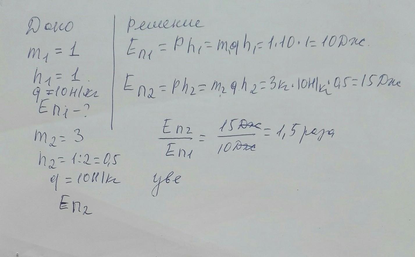 Как изменится потенциальная энергия, если массу тела увеличить в 3 раза, а высоту уменьшить в 2 раза?