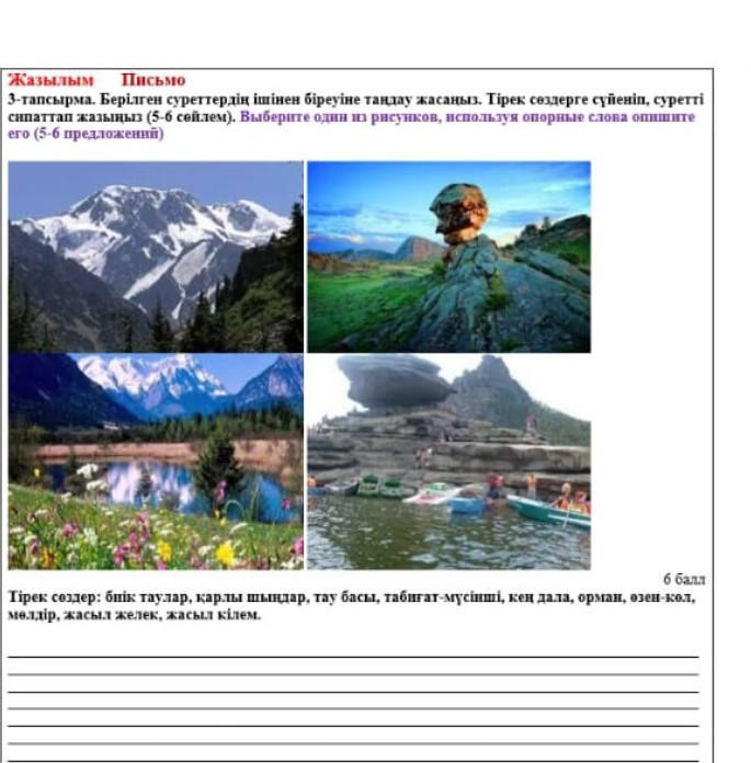 Бурабай мемлекеттік ұлттық табиғи паркі, ол жерге көп адамдар мен туристер келеді. Қазақстаннын табиғаты керемет, жасыл желек қырлары, мөлдір сулары көз тартарлықтай және биык таулары өте көп.