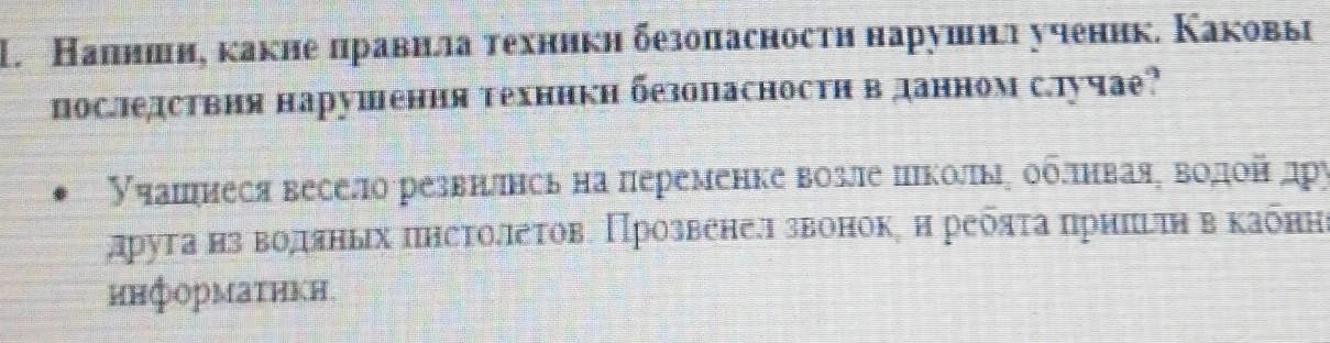 Напиши, какие правила техники безопасности нарушил ученик. Каковь