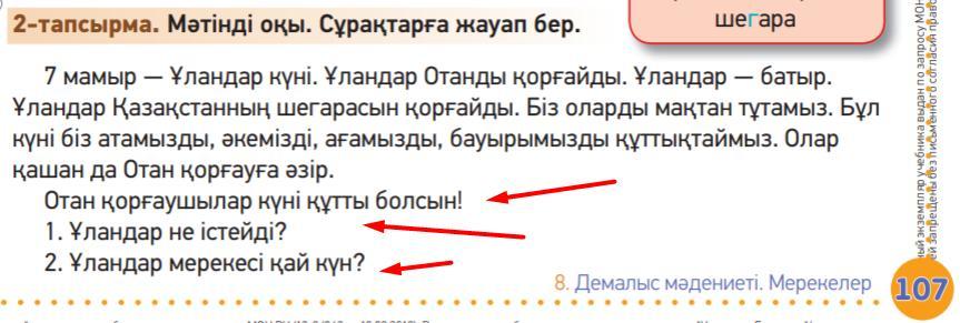 1. Ұландар Отанды, шекарамызды,бізді қорғайды.