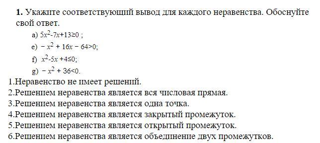 2 корня. Ветки параболы направлены вверх, у<= на одном промежутке