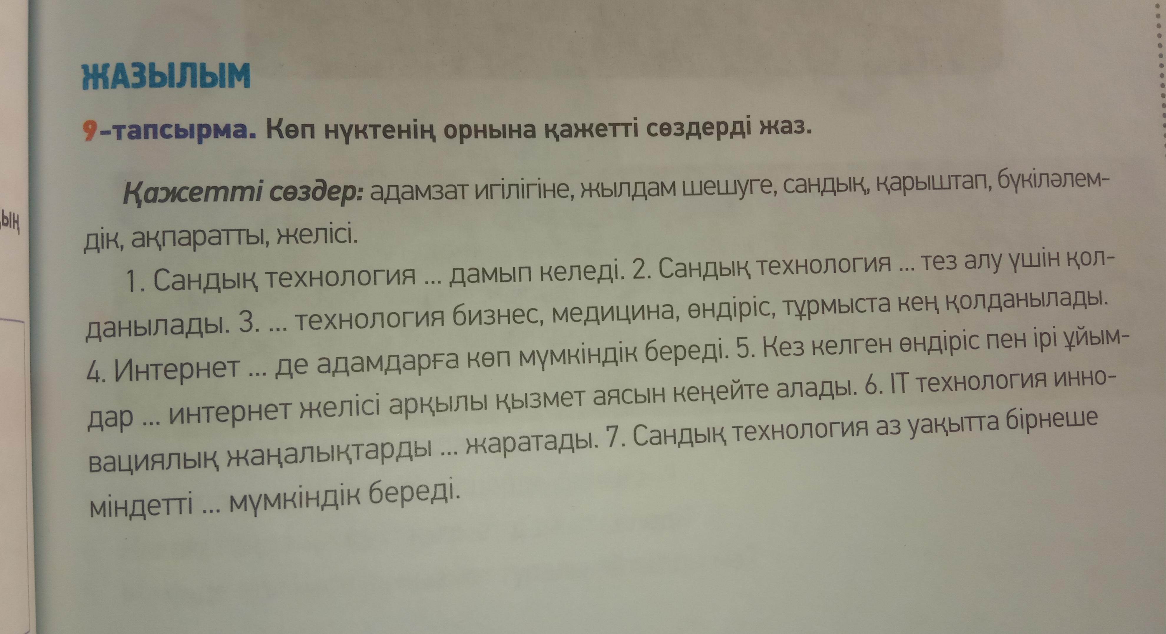 Көп нүктенің орнына кажетті сөздерді жаз. Кажетті сөздер: адамзат игілігіне, жылдам шешуге, сандык, карыштап, бүкіләлем- дік акпаратты, желісі.