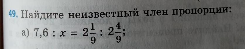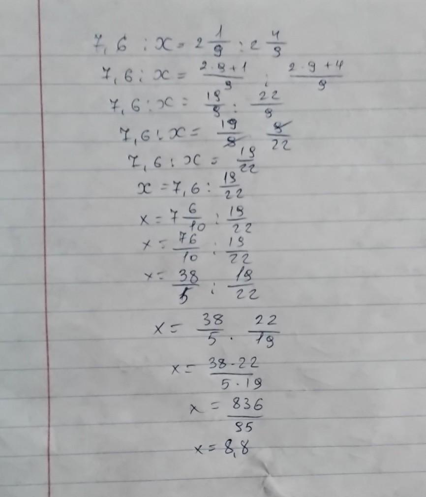 7,6 : х = 2 1/9 : 2 4/9 ;