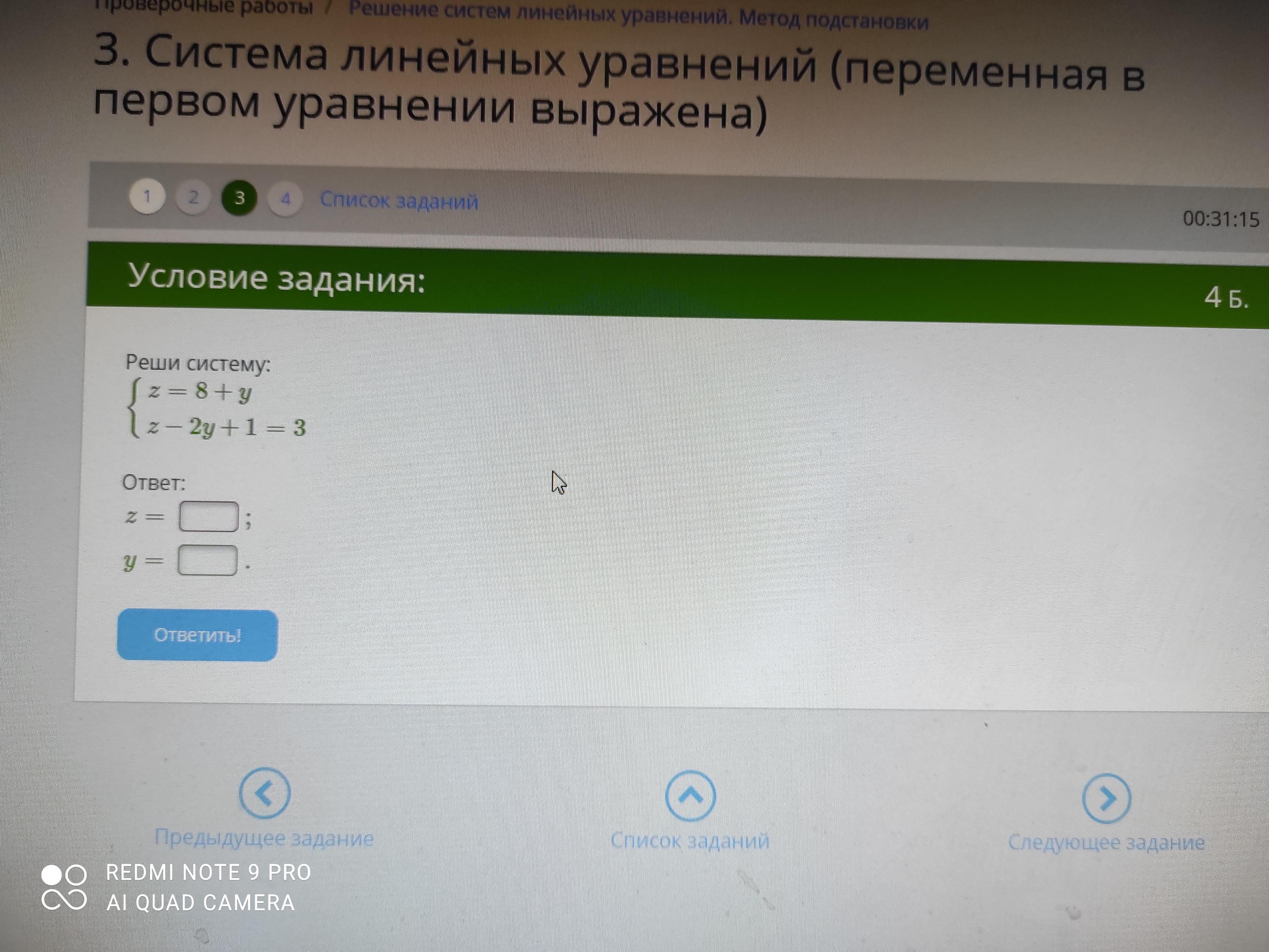 {z-2y+1=3 ,{z=2y+2 ,8+y=2y+2 , 6=y ,y=6