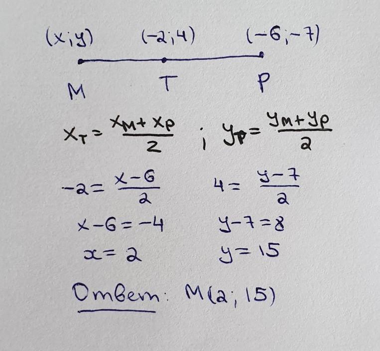 Точка Т – середина отрезка МР. Найдите координаты точки Р,