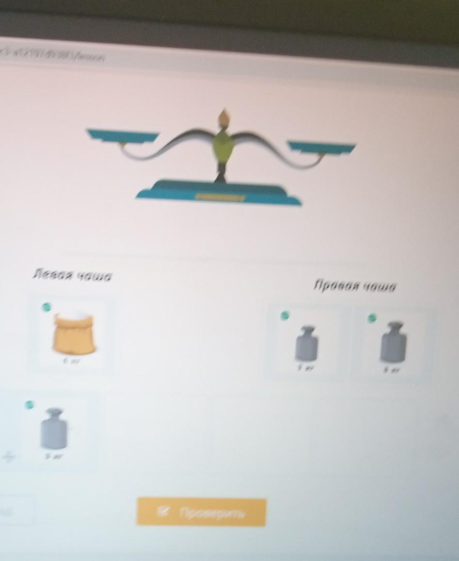масса пакета муки 4 кг? Перенеси пакет с мукой на левую чашу весов и поставь на