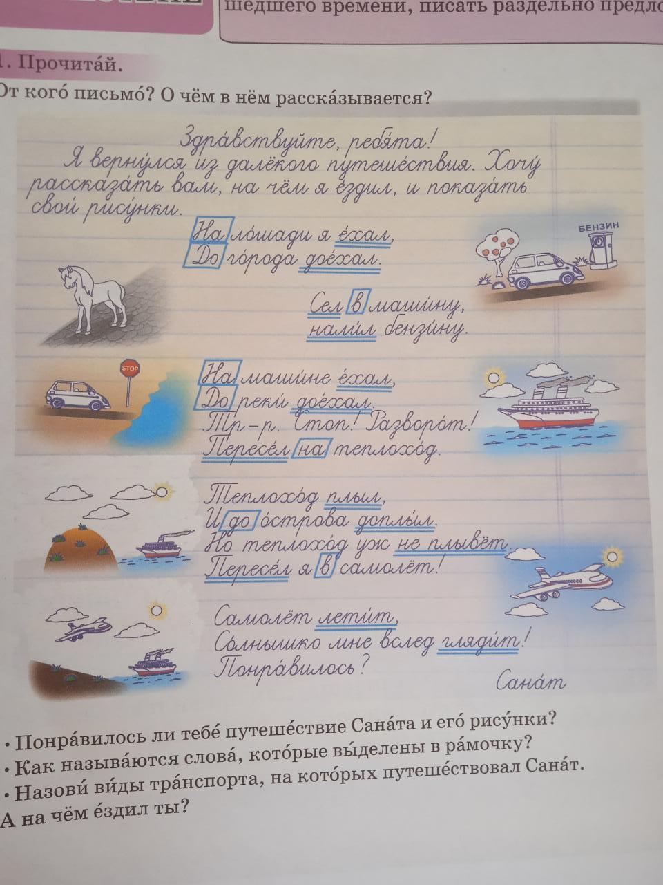 Что делал Санат, чтобы его машина поехала? (Заправил ее бензином)