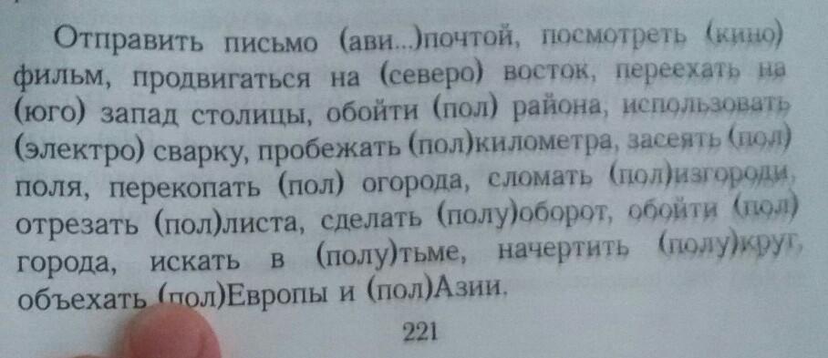 авиапочтой, кинофильм, северо-восток, юго-запад, полрайона, электросварку, полкилометра, полполя, пол-огорода, пол-изгороди, пол-листа, полуоборот, полгорода, полутьма, полукруг, пол-Европы, пол-Азии