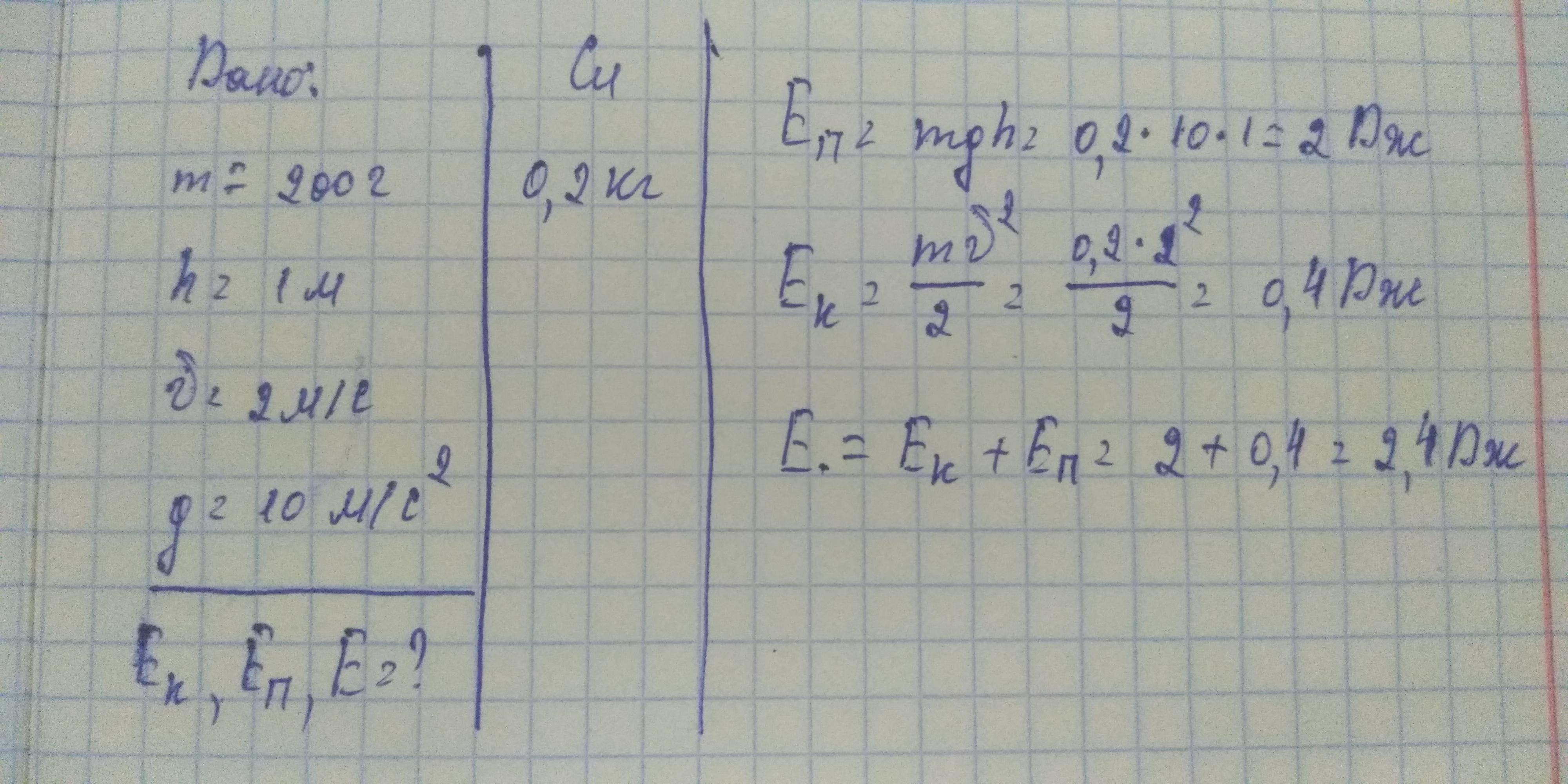 цилиндр массой 200 г катится по поверхности стола высотой 1м, со скоростью 2 м/с. Вычислите потенциальную энергию, которой обладает цилиндр?