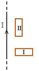 Вблизи бесконечно длинного прямолинейного провода с током в одной плоскости с проводом расположены две одинаковые проводящие рамки.