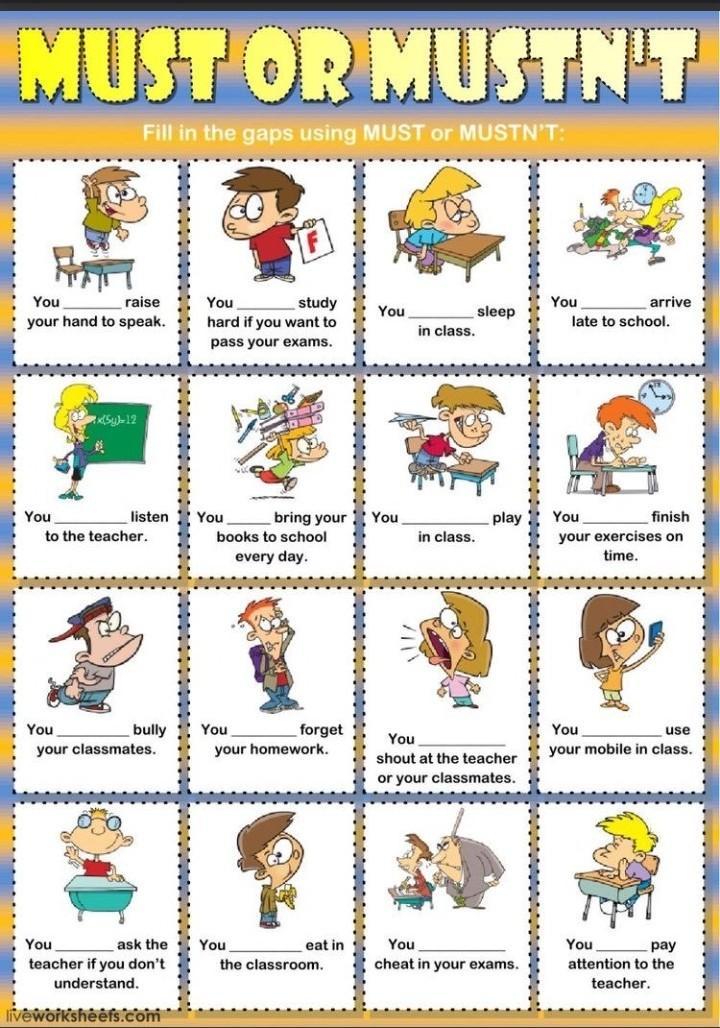 4. you mustn't arrive late to school