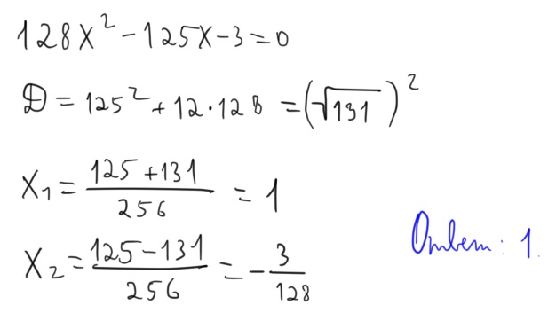 Д=(-125)^2+4•128•3=17161=131^2