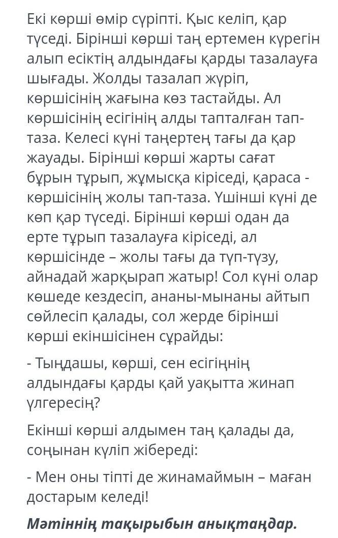 Мәтіннің тақырыбы : екі көрші , достардың қасиеті