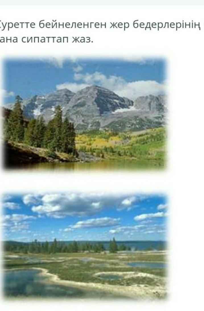 1)ол жерде тау , өзен, ағаш және жануарлар ,өсімдіктербар.