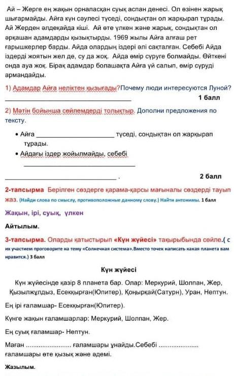 2)Айға күн сәулесі түседі, сондықтан ол жарқырап тұрады