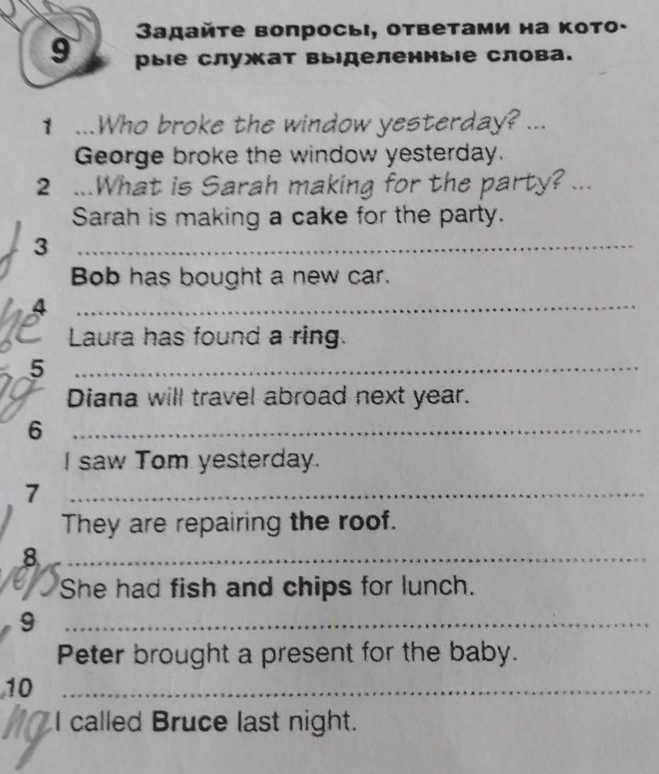 Нужно всего лишь определить, если выделенное слово человек то вопрос Who, если какой то предмет то What, а также поставить то время которое стоит в предложении.