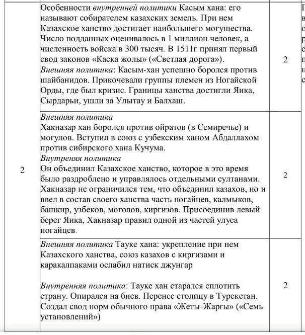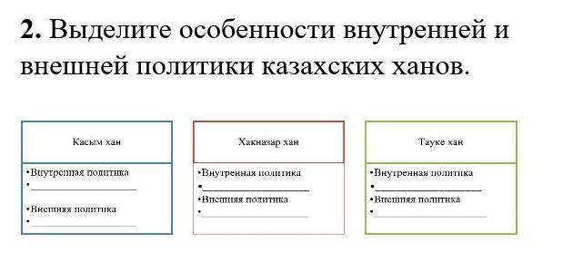 2. Выделите особенности внутренней и внешней политики казахских ханов.