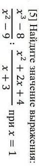 3. [5] Найдите значение выражения: x3 - 8 x² + 2x + 4 : х² - 9 x+3 при х = 1​