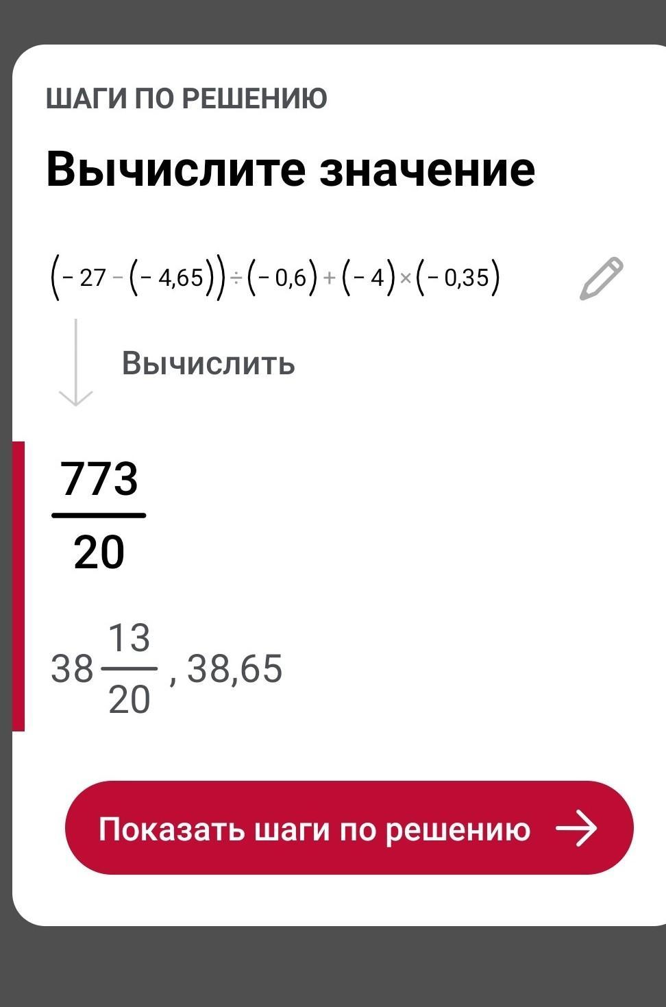 (-27-(-4,65)):(-0,6)+(-4)×(-0,35)= -22.35÷(-0,6)+1,4= 37.25 + 1,4=38.65