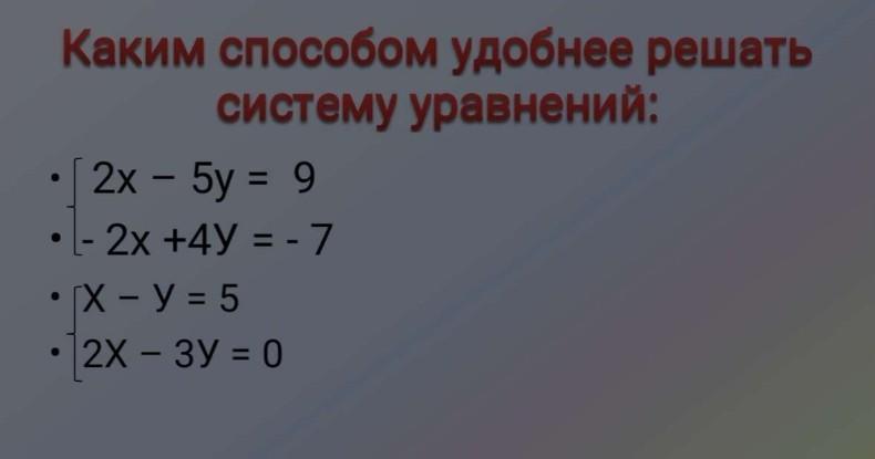 Ответ: Первую систему способом алгебраического сложения, а вторую способом подстановки (выражаем х через у или у через х)