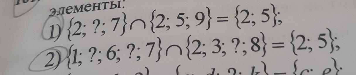 напишите в нижеприведенных множествах вместо знака? нужные элементы: (только 1 и 2) если можно побыстрей пожалуйста..