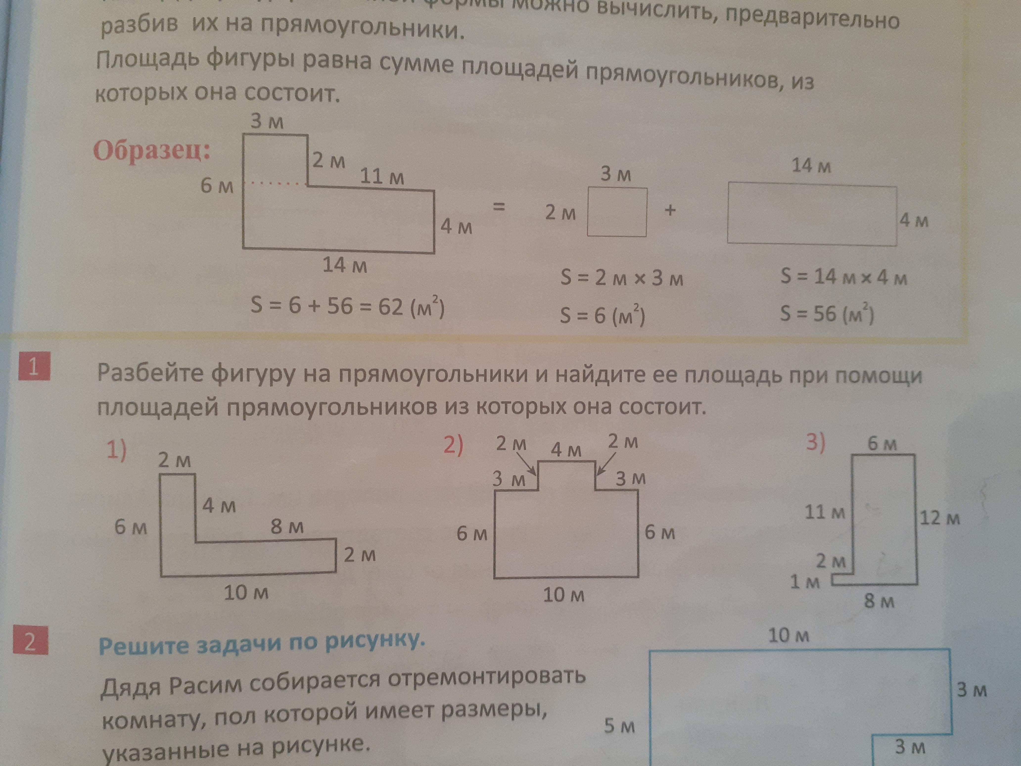 S1 = ( 2 + 1 ) × 2 = 3 × 2 = 6 м²