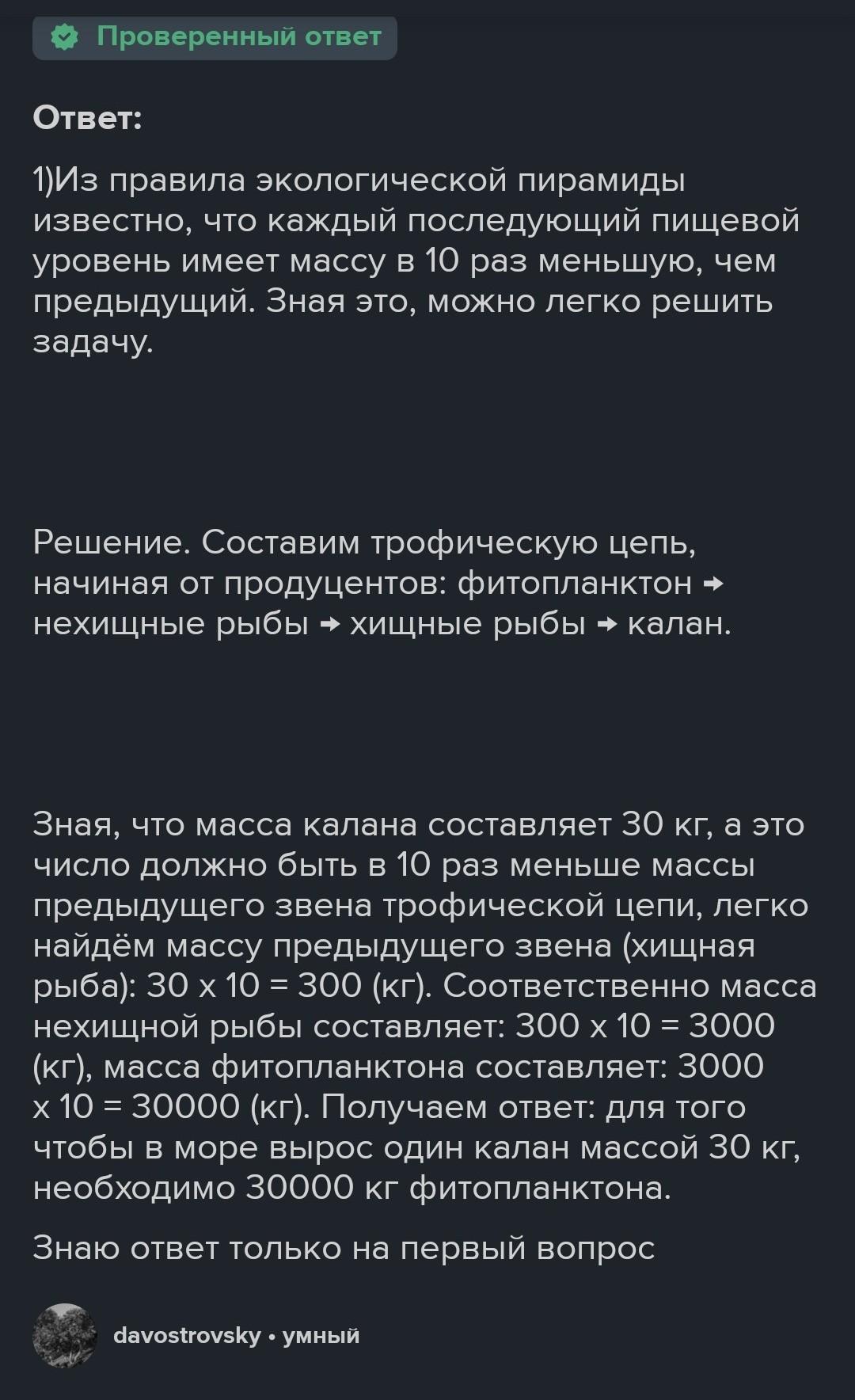 Сколько нужно планктона (водорослей и бактерий), чтобы в море выросла мор-ская выдра массой 25 кг, если цепь питания имеет вид: фитопланктон, нехищные рыбы, хищные рыбы, морская выдра.
