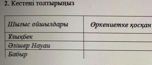 Ответ:Ұлықбек қосқан үлесі:жаңа астрономиялық кестелер