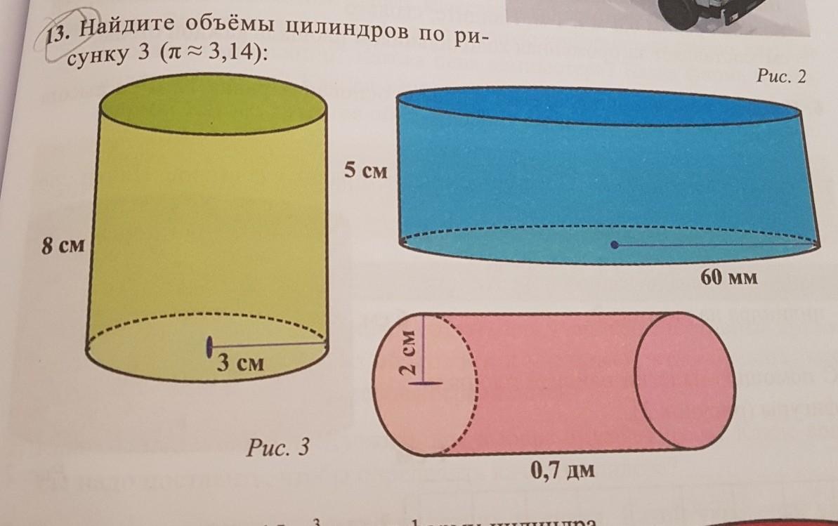 . Найдите объёмы цилиндров по рисунку 3 (п= 3,14):