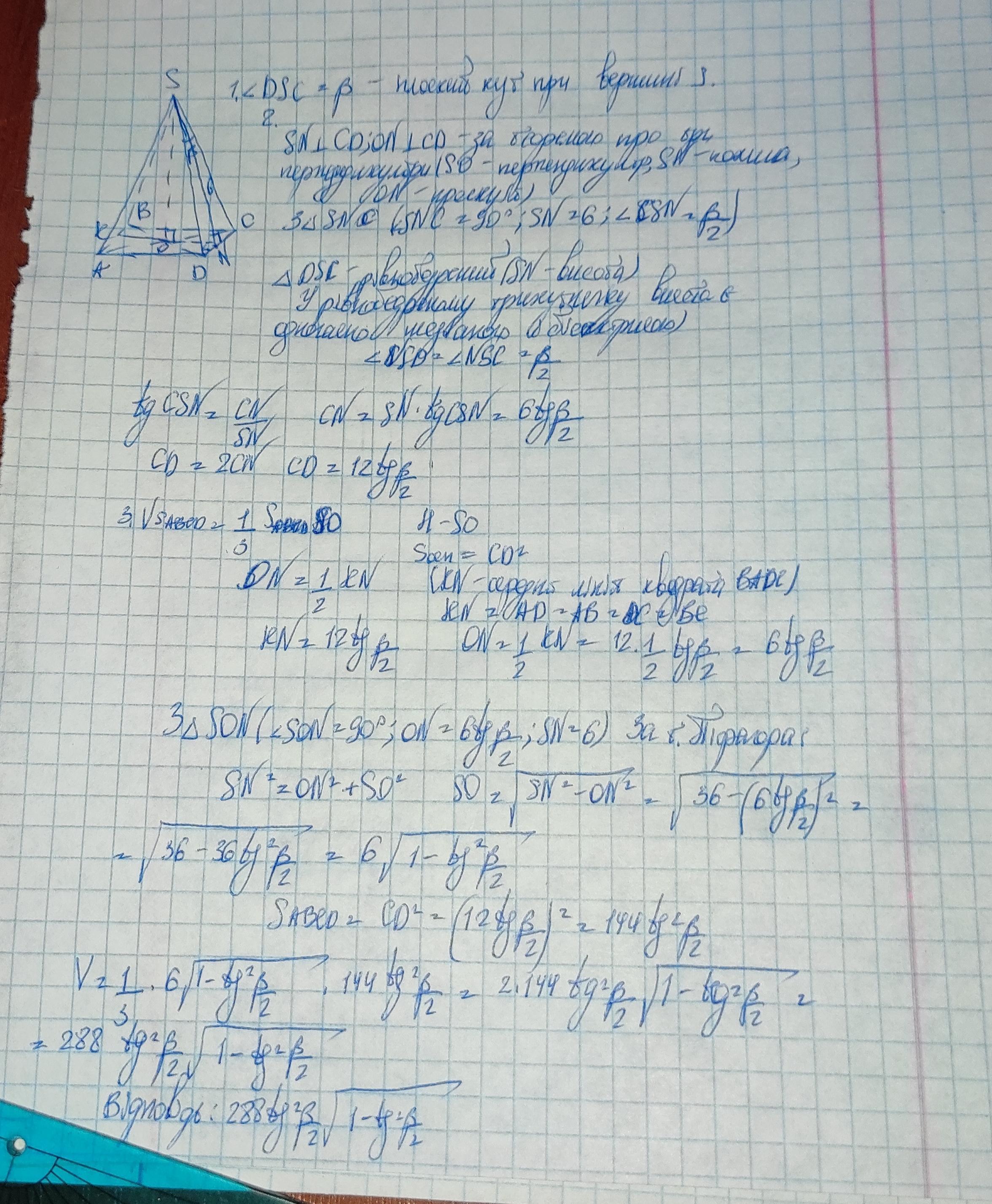 Відповідь: 288tg²(β/2)•√(1-tg²(β/2))