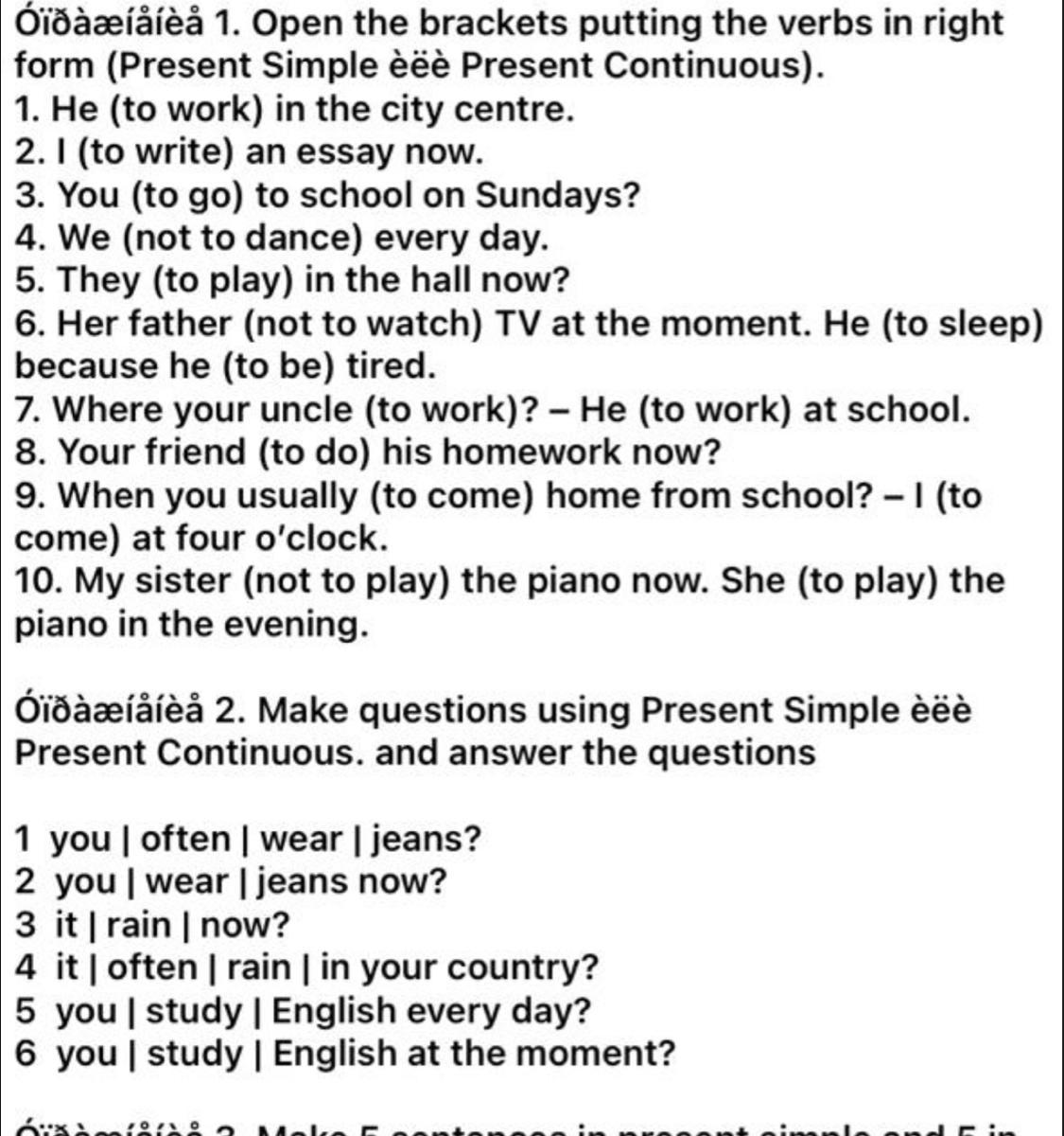 10. My sister isn't playing the piano right now. She plays....