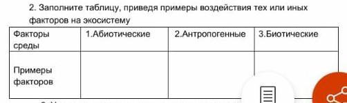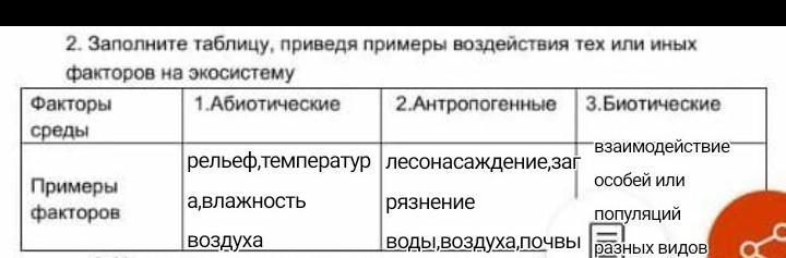 3.биотические:Биотические факторы — факторы живой природы, влияющие на организм. Примеры: микроорганизмы, животные и растения. Антропогенные факторы — факторы, связанные с деятельностью человека.